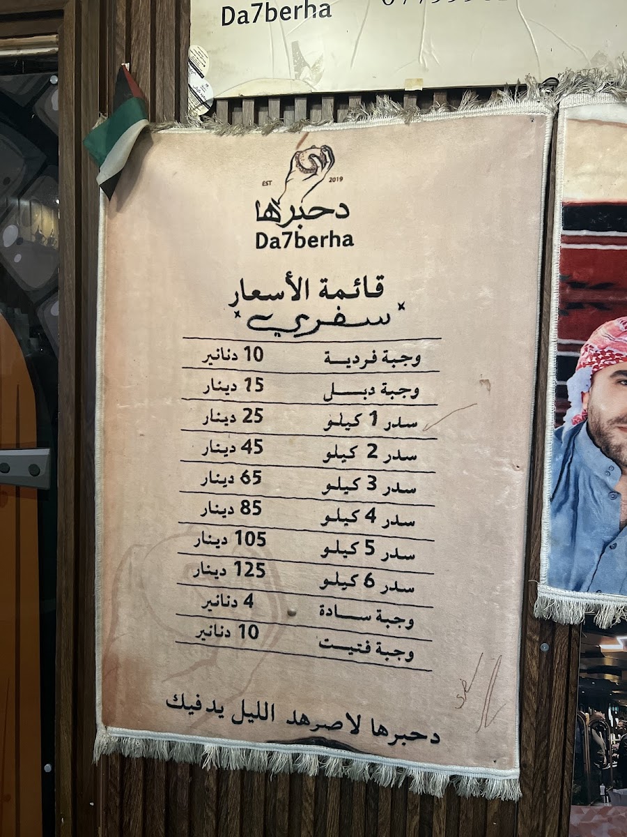 Da7berha restaurant offers a straightforward and comforting menu centered around one of Jordan’s most beloved traditional dishes, Mansaf. The menu reflects a warm, casual dining experience where simplicity and authenticity take the spotlight. Guests typically come here for a hearty lunch or dinner, enjoying a full meal that feels both familiar and satisfying.